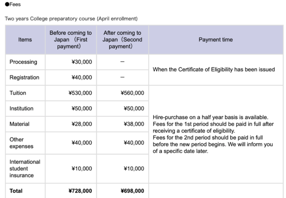 There are many private universities in Japan, with different tuition fees but usually above 700,000 JPY a year.